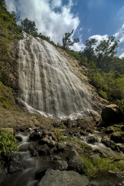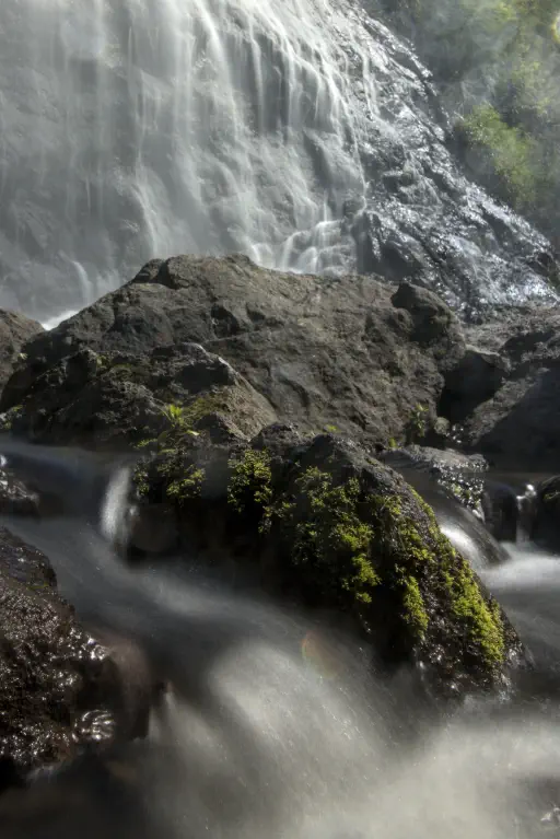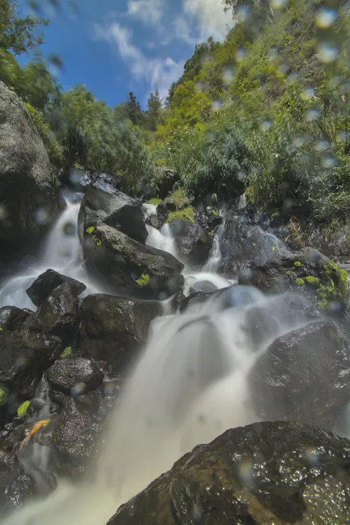 Die Wanderung begann mit einem kurzen Abstieg, einer Hängebrücke über einen reißenden Fluss (irgendwo müssen die ganzen Wasserfälle ja hinfallen) und mündete dann wieder in einen kräftezehrenden Aufstieg. Schattige Plätze waren rar gesäht, es war wieder einmal sehr heiß. Mit Nael und unserem üblichen Badegepäck auf dem Rücken kam ich wieder gar nicht klar. Schritt für Schritt trotzte ich meinem Körper aber die Belohnung ab: besagten Brautschleier Wasserfall. Und, hui Bub’, hatte sich das wieder gelohnt. Von dort oben hatte man eine sagenhafte Aussicht auf die Berge, zwischen denen Wolken hingen und man hatte einen Wasserfall, dessen Abkühlung nach dem Anstieg so segensreich war - krass! Auch hier versagen mir mal wieder die Worte. Nachdem ich zwei Liter Wasser abgepumpt hatte stellte ich mich unter den Wasserfall, schaute auf die Berge und wollte diesen Ort nie wieder verlassen. Ich neige ja selten zu lautstarken Gefühlsausbrüchen, doch hier überkamen mich meine bayerischen Gene und ich musste meine Freude einfach ins Tal jodeln.