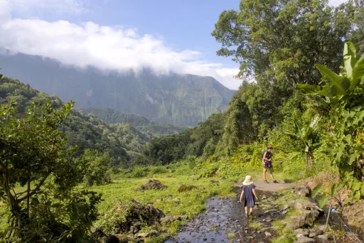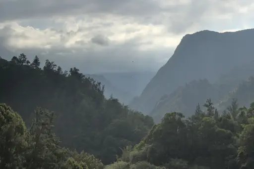 Nun aber auch die traurige Hochzeitslegende, die dem Wasserfall seinen Namen gab (gut, abgsehen vom Offensichtlichen: der breite Wasserfall sieht einfach aus wie ein Brautschleier): in diesem Tal Salazie lebte einst ein wilder Räubersmann ein (merkwürdiger) Mann mit seiner Tochter. Seine Frau war gestorben, aber seine Tochter sah ihr so ähnlich, dass er sie nicht verheiraten wollte, um sie nicht zu verlieren (weird, I know). Eines Tages aber verliebte sie sich (reziprok) in einen reichen Jüngling. Aber auch das verbat Inzestdad. Das junge Paar kannte aber kein Pardon und flüchtete in die Kirche, um sich direkt zu vermählen. Take that, weirdo Vadder! Ebenjener aber zückte seinen Säbel und stürmte wutentbrannt die Kirche, um den Königssohn niederzustrecken. Also flüchteten die Frischvermählten den Berg hinauf. Die Braut trug aber dummerweise noch ihren Brautschleier. Bisschen inkonsistent, ich meine, woher hatte sie einen Brautschleier, wenn es eine spontane Ad-Hoc Hochzeit war? Hatten die die Dinger damals einfach in der Kirche auf Vorrat rumliegen, oder was? Naja, wie sie da so auf den engen Gamspfaden vor ihrem Vater herumflüchtete sah sie wegen des Schleiers nicht richtig (nicht, dass man ihn auch vielleicht hätte ausziehen können, wenn man da so free solo im Berg herumsteigt, aber wer bin ich darüber zu urteilen?) und es kam wie es kommen musste: ein fehlplatzierter Tritt im Stiletto und sie stürzte an ebenjenem Wasserfall in ihren Tod. Was aus dem reichen Ehemann wurde, erfahren wir nicht. Ihr Vater war nun natürlich traurig wie kein Zweiter, der Weirdo. Er saß also Tag und Nacht oben am Wasserfall und weinte seine Tränen bis zu seinem Tod in den Wasserfall hinein. So viel also zum Brautschleier.