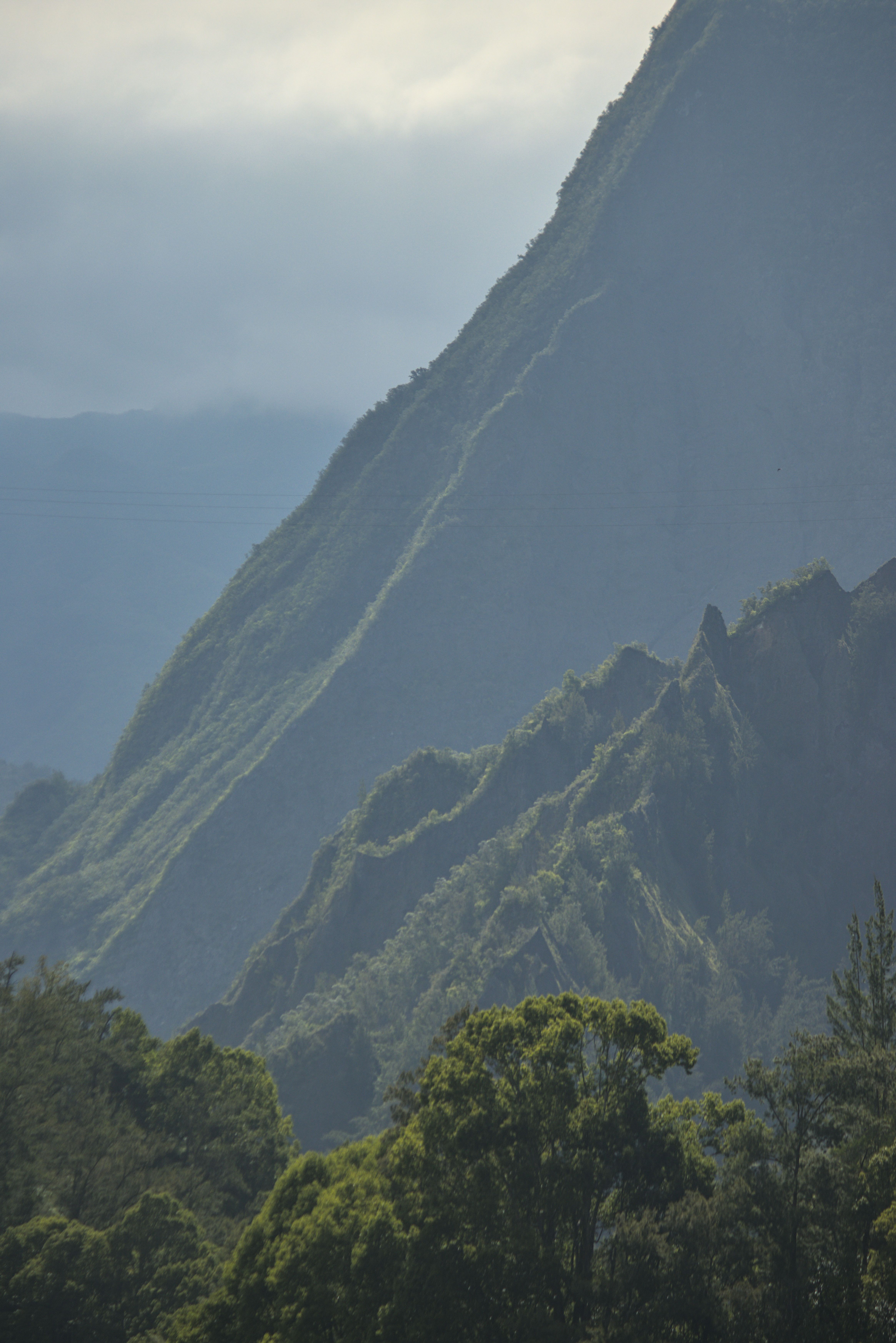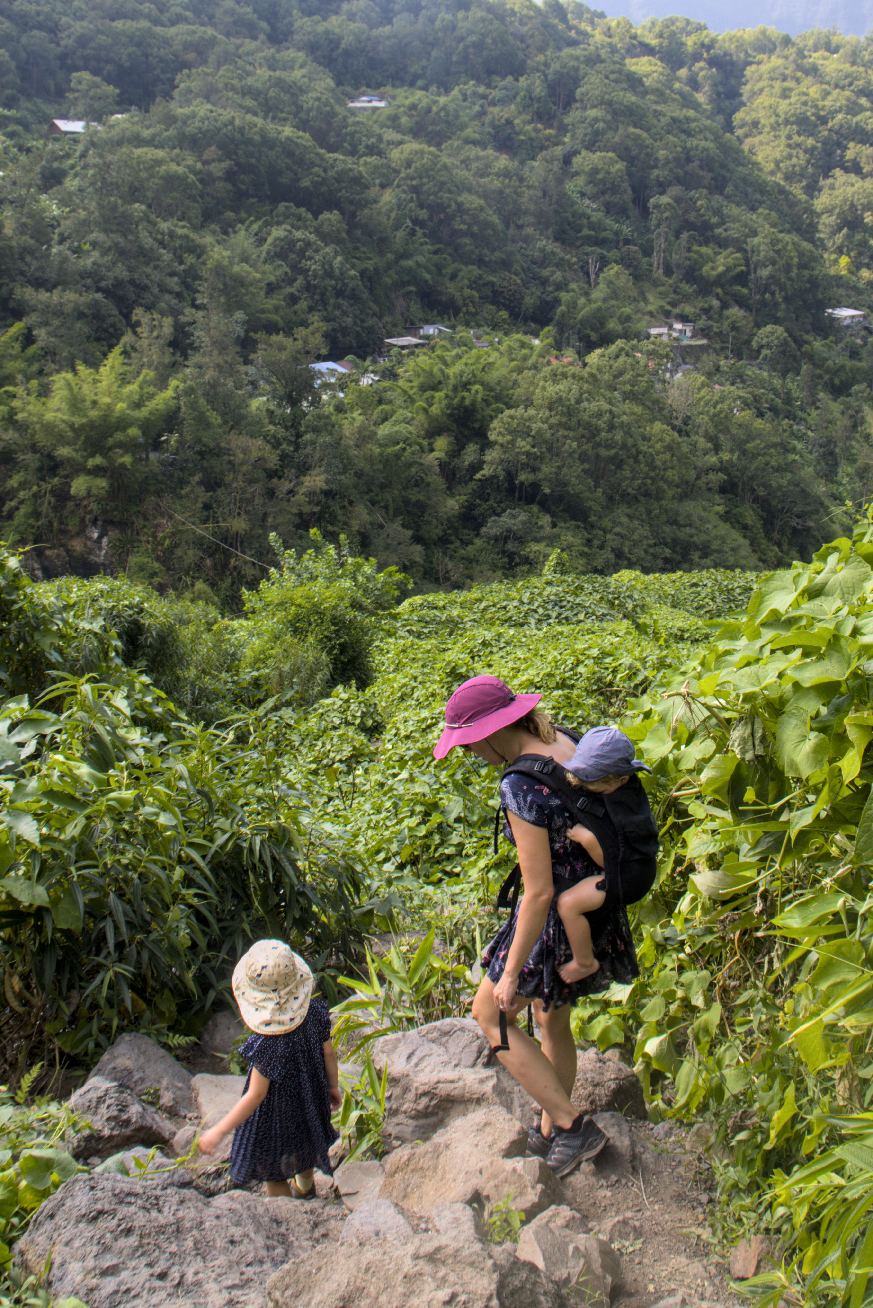 Nun aber auch die traurige Hochzeitslegende, die dem Wasserfall seinen Namen gab (gut, abgsehen vom Offensichtlichen: der breite Wasserfall sieht einfach aus wie ein Brautschleier): in diesem Tal Salazie lebte einst ein wilder Räubersmann ein (merkwürdiger) Mann mit seiner Tochter. Seine Frau war gestorben, aber seine Tochter sah ihr so ähnlich, dass er sie nicht verheiraten wollte, um sie nicht zu verlieren (weird, I know). Eines Tages aber verliebte sie sich (reziprok) in einen reichen Jüngling. Aber auch das verbat Inzestdad. Das junge Paar kannte aber kein Pardon und flüchtete in die Kirche, um sich direkt zu vermählen. Take that, weirdo Vadder! Ebenjener aber zückte seinen Säbel und stürmte wutentbrannt die Kirche, um den Königssohn niederzustrecken. Also flüchteten die Frischvermählten den Berg hinauf. Die Braut trug aber dummerweise noch ihren Brautschleier. Bisschen inkonsistent, ich meine, woher hatte sie einen Brautschleier, wenn es eine spontane Ad-Hoc Hochzeit war? Hatten die die Dinger damals einfach in der Kirche auf Vorrat rumliegen, oder was? Naja, wie sie da so auf den engen Gamspfaden vor ihrem Vater herumflüchtete sah sie wegen des Schleiers nicht richtig (nicht, dass man ihn auch vielleicht hätte ausziehen können, wenn man da so free solo im Berg herumsteigt, aber wer bin ich darüber zu urteilen?) und es kam wie es kommen musste: ein fehlplatzierter Tritt im Stiletto und sie stürzte an ebenjenem Wasserfall in ihren Tod. Was aus dem reichen Ehemann wurde, erfahren wir nicht. Ihr Vater war nun natürlich traurig wie kein Zweiter, der Weirdo. Er saß also Tag und Nacht oben am Wasserfall und weinte seine Tränen bis zu seinem Tod in den Wasserfall hinein. So viel also zum Brautschleier.
